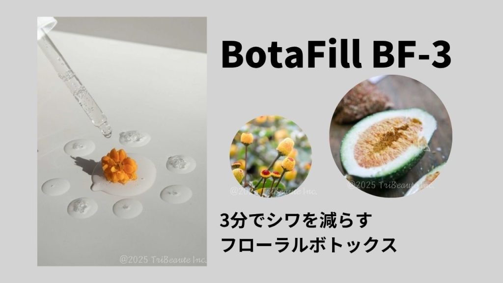 BotaFill BF-3はオオイタビ、オランダセンニチ、コーンという3種類の植物から抽出した特徴的なシワケア成分をミックスした複合原料である。